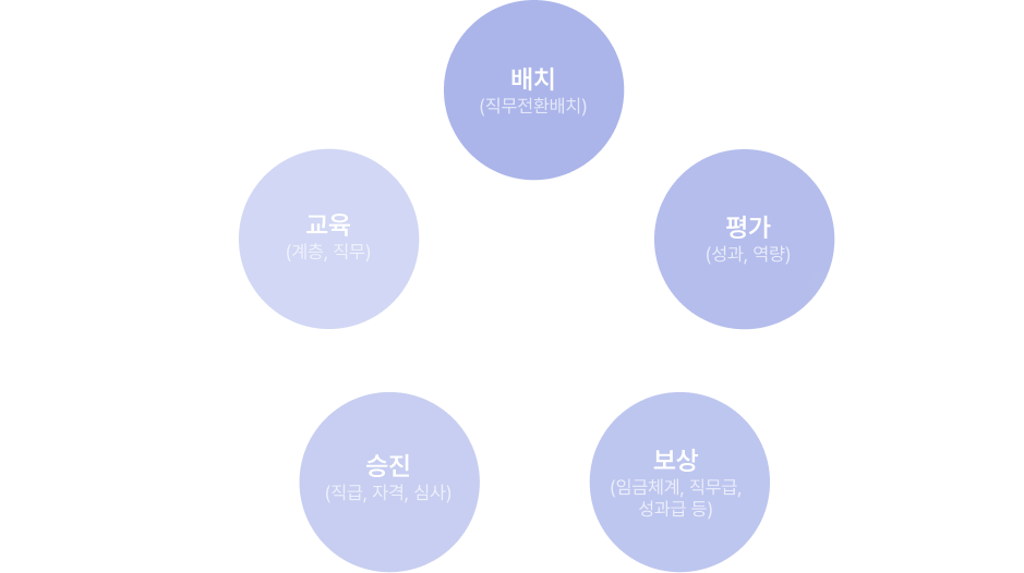 미래 성장동력의 원천인 구성원들의 열정적인 업무 몰입을 위해서는 교육, 배치, 평가, 보상, 승진 등 다양한 여건을 제공해야 합니다.